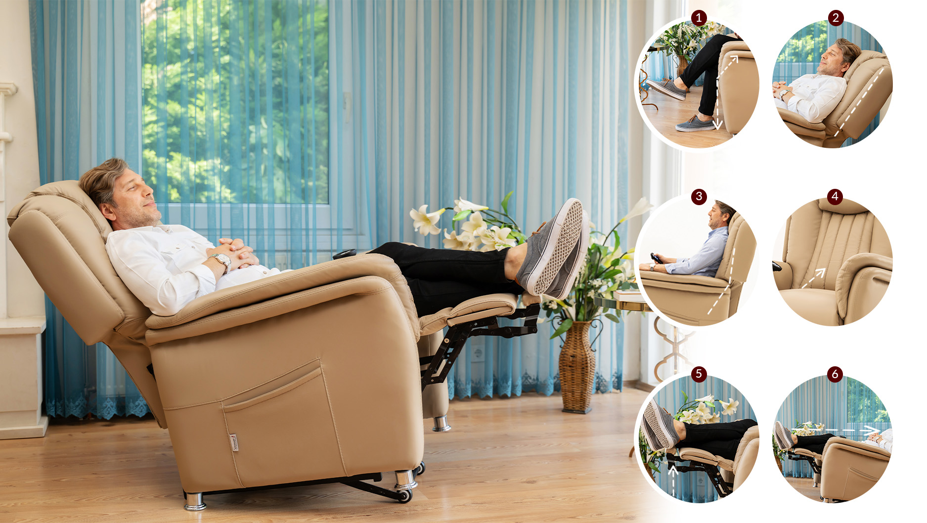 Herhangi bir motora ihtiyaç duymadan bireysel kuvvetiniz ile isteğiniz noktada konumlandıracağınız koltuk başlığı sizlere tv izlerken, kitap okurken boyun fıtığı ağrılarınıza da gerekli desteği verecektir.